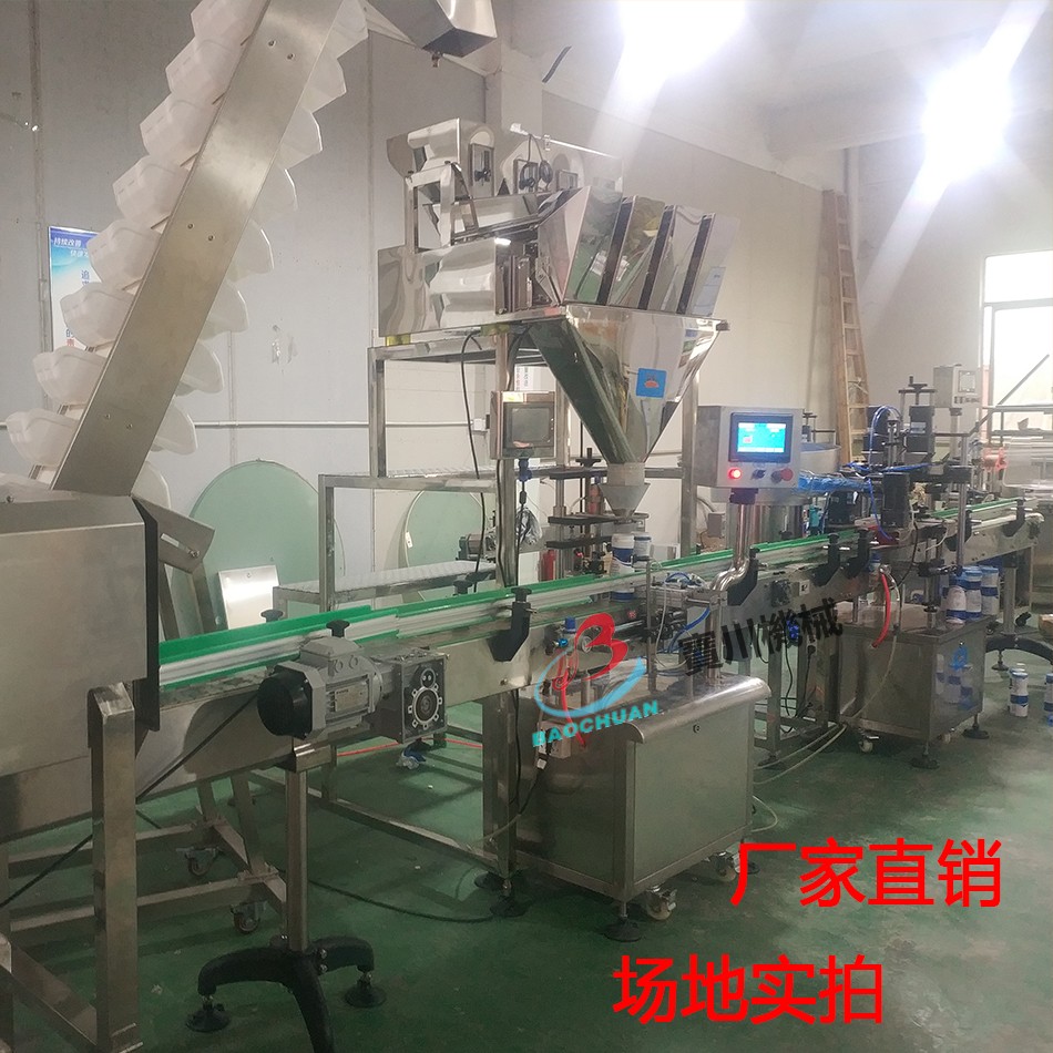 多功能称重分装机灌装机可分装小熊饼干、膨化食品、爆米花、坚果、瓜子、药片、泡腾片、大红袍、红茶、绿茶、铁观音、岩茶等所有条形、颗粒型茶叶.分装快速、稳定、确!分装机电脑板都是采用进口电脑板,运行稳定,分装精准。多功能称重分装机经过优秀工程师精心研究设计,多功能称重分装机采用PLC电脑、光电技术控制,精准度高,速度快,质量好,解决了传统的包装繁琐工艺。一部自动定量器相当于好几位工人的劳动量,是厂家生产及商店的好帮手。称重分装时不产生碎末,克服了因颗粒大小不一而造成包装误差过大等问题,全环保不锈钢通道、安全、卫生。多功能称重分装机双重减震结构,机器运行平稳,噪音低。体积小,重量轻。斜抛送料,不挤压损伤物料,多功能称重分装机特别适用于易碎物料的分装。显示包装重量和包数。可调包装速度。设定称重超量报警。
