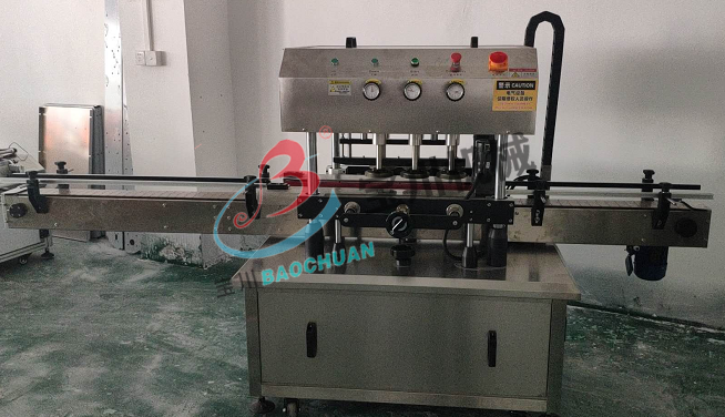 本机采用机、电、气、一体化设计,可由PLC智能控制,结构紧凑合理,操作维修方便;直线式的进瓶和定位,使它适合多种瓶形的旋盖,适应性极强,是一款不可多得的自动化旋盖设备,广泛应用于食品饮料、调味品、保健品、酱料、药品等行业中各种三(四)锁盖、PT盖、塑料螺纹盖的旋紧(根据瓶盖设计)。