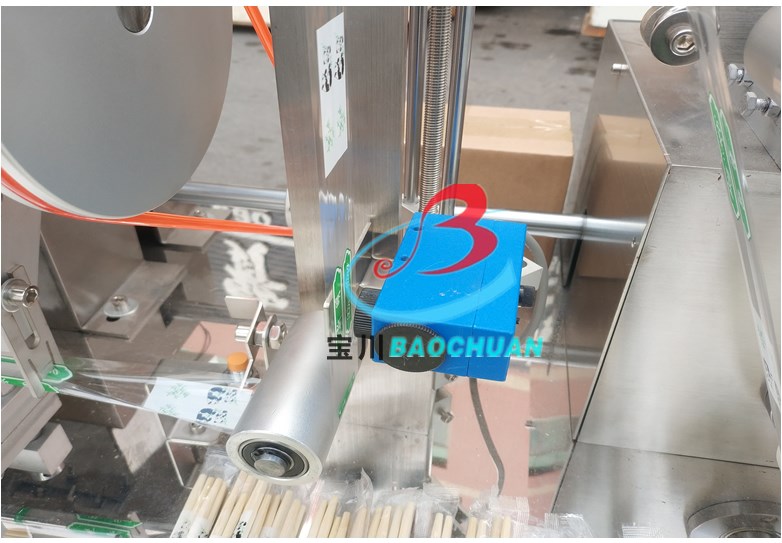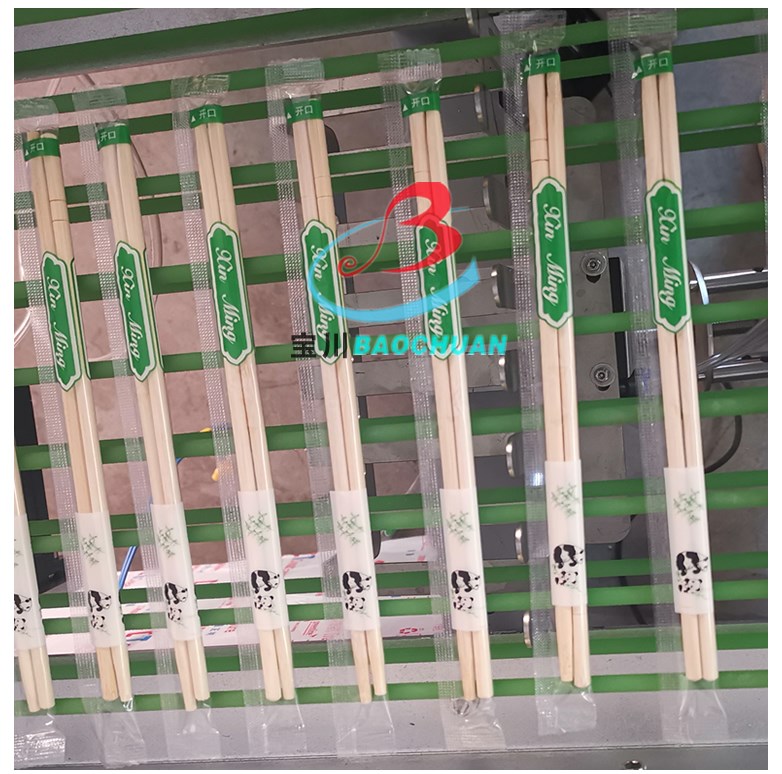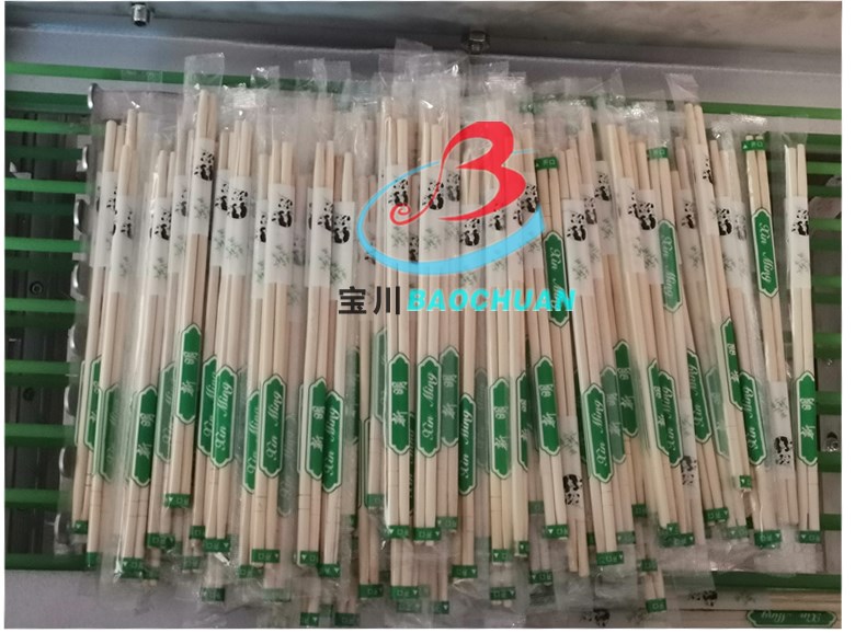 本机可变频调速,自动计数,自动跟踪光标的,个袋包一双筷子,尾包可以根据自己的要求(比如:10双一袋、15、20、 50、 100双一袋)、筷子自动送料、封口、切断、自动计数出优质包装成器,是一种集高科技、高效率的筷子包装机,可以单独做筷套,适合纸膜和塑料膜(PE、OPP、淋膜纸)。